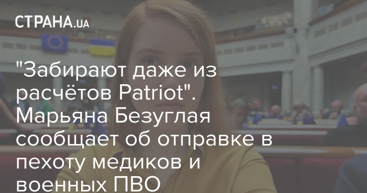 Народний депутат Мар'яна Безугла продовжує повідомляти про відправлення до піхоти медиків та військових ППО.