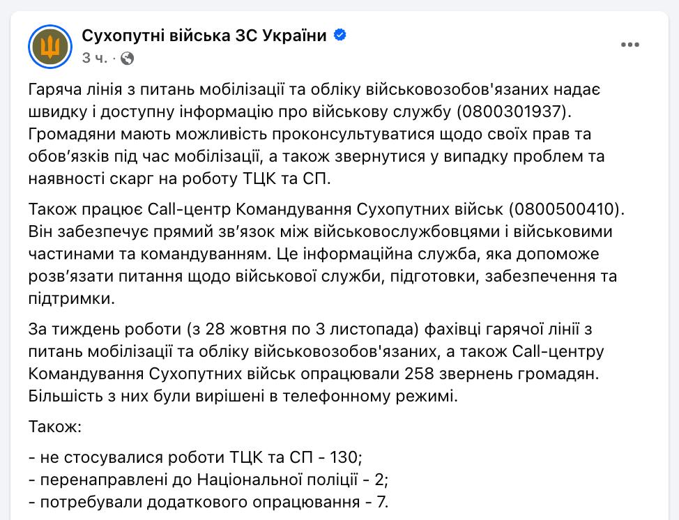 Так, за номером 0 800 301 937 громадяни також можуть проконсультуватися щодо своїх прав та обов'язків під час мобілізації.
