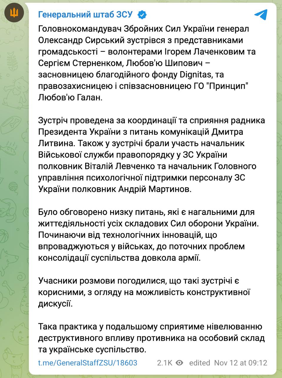 Головнокомандувач Збройних сил України Олександр Сирський зустрівся з волонтером та праворадикалом Сергієм Стерненком на тлі скандалу з його розшуком у ТЦК.