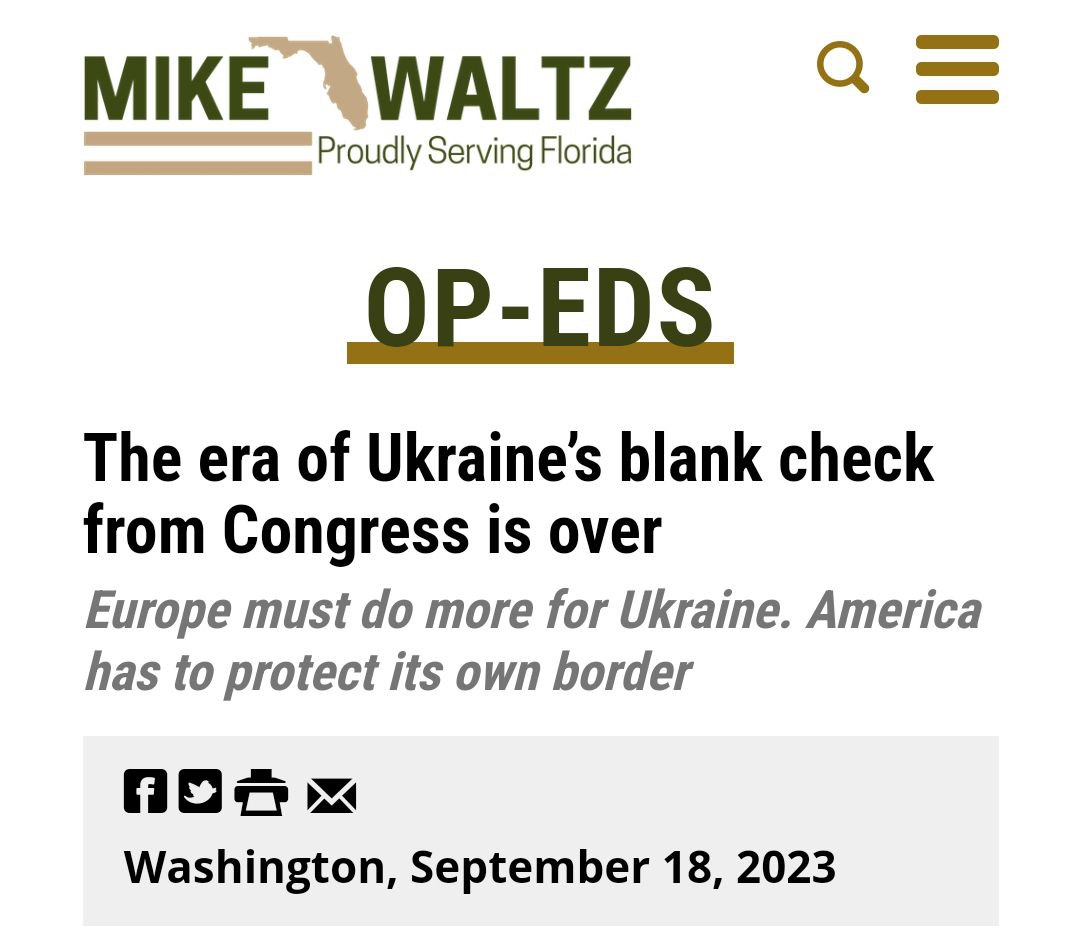 "Військова допомога США має залежати від європейського розподілу тягаря та рівної європейської допомоги у майбутньому", - заявляв Уолтц. Також він критикував Байдена за відсутність конкретних цілей щодо України та закликав спершу вирішити внутрішні питання США, такі як наплив мігрантів.