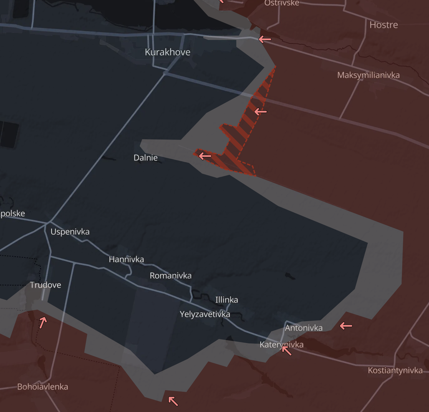 Різко загострилася ситуація на південь від Курахового, де росіяни увійшли до села Дальнє. Воно виходить прямо на трасу, яка з'єднує Курахове із селом Успенівка, і зараз РФ близька до її перерізання – до траси менше двох кілометрів.