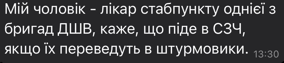 "Розрахунково-аналітичний підрозділ ЗСУ має 70 осіб. Видано наказ 20 відправити на передову. Це підрозділ хіміків, які пройшли стажування за кордоном та їх берегли на випадок атомної небезпеки. Ну, майбутні смертники, які рятуватимуть усіх у крайньому випадку. Аналогічно по всіх підрозділам, що дислокуються у східних областях. Усі служби забезпечення повинні відправити в окопи 25%. персоналу", - наводить депутат слова свого передплатника.