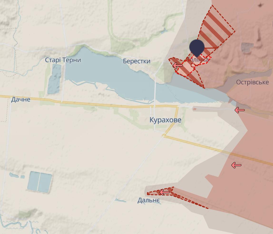 17.26 Менше 6 км залишилося до оточення ЗСУ на південь від Курахового, свідчить карта Deep State.