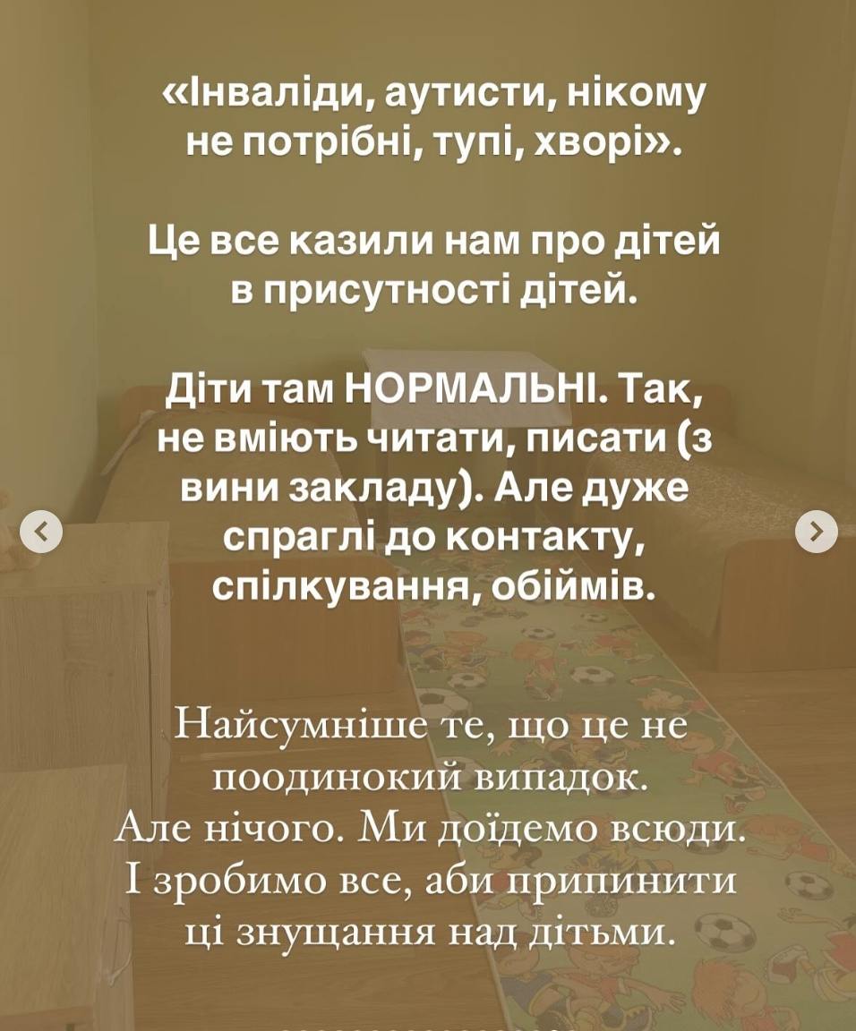 Також, за її словами, деяких дітей "за погану поведінку" відправляли до місцевої психіатричної лікарні, де без свідчення лікарів кололи сильнодіючі заспокійливі, після яких вони ставали "як овочі".