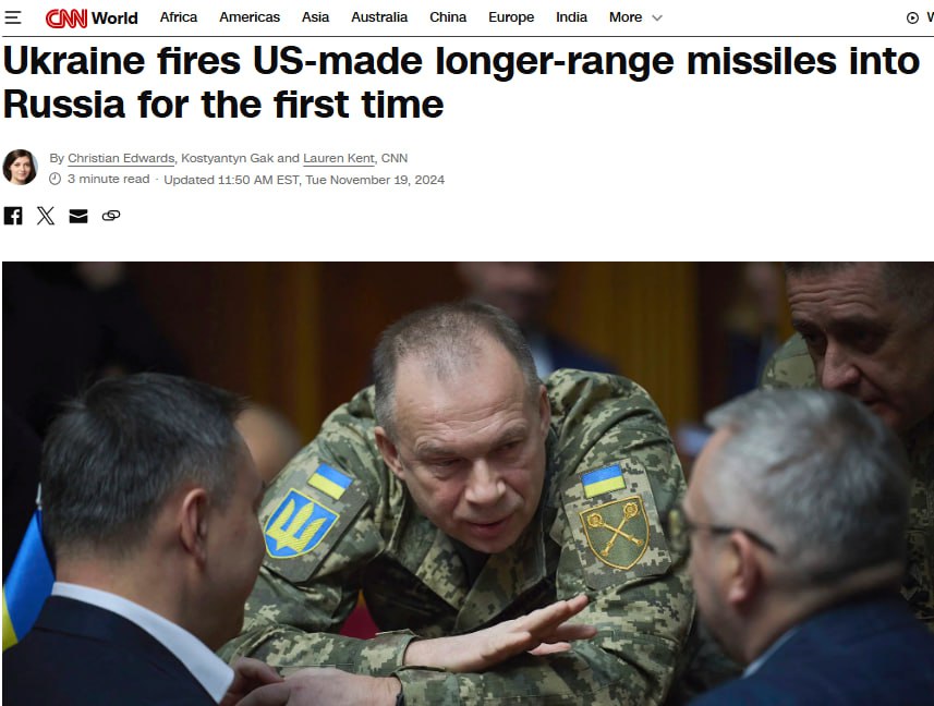 Заявляється, що удар завдався "в рамках нової політики США, яка більше не накладає на Україну заборону застосовувати американські далекобійні ракети з метою Росії".