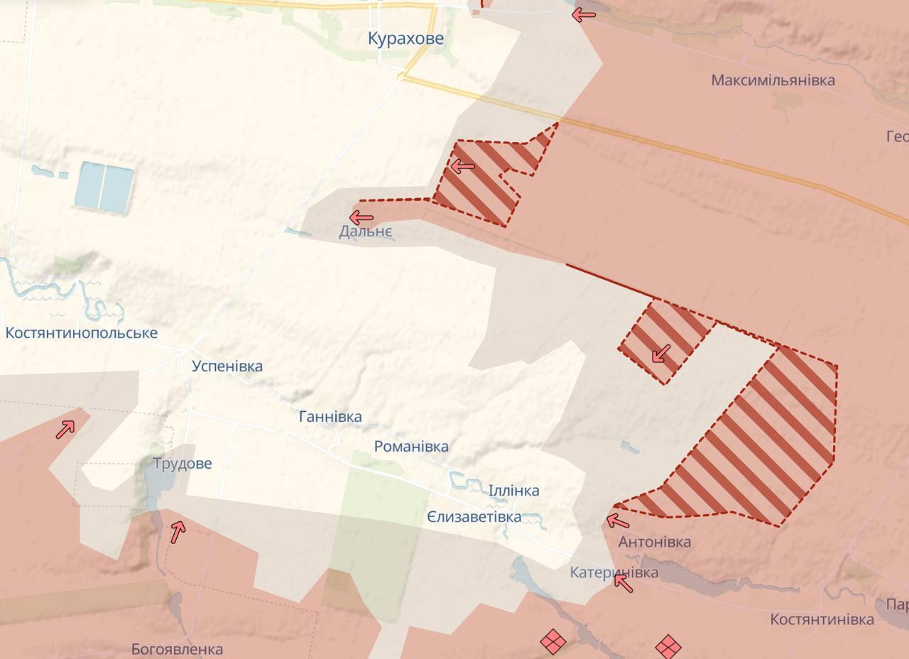 Російські паблики вчора заявили про захоплення Нової Іллінки на північ від Курахового. Вони опублікували кадри свого прапора над одним із будинків на узбережжі річки Вовча. Від Нової Іллінки веде дамба у бік курахівських пляжів (стверджується, що там уже тривають бої).