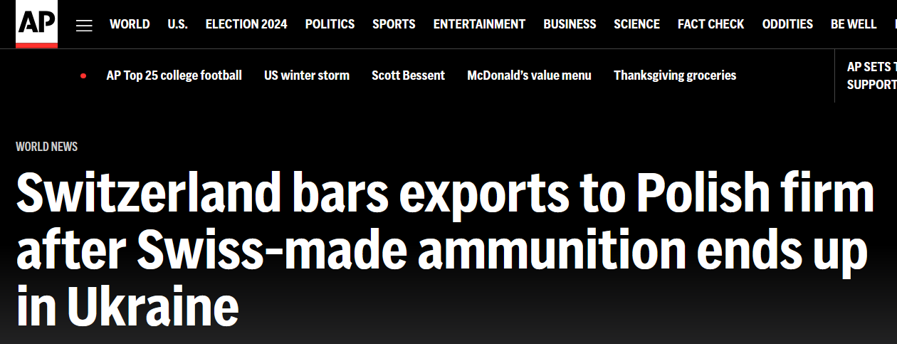 Про реекспорт уряд Швейцарії дізнався з преси, після чого провів розслідування та з'ясував, що польська компанія UMO відправляє швейцарські боєприпаси Україні.
