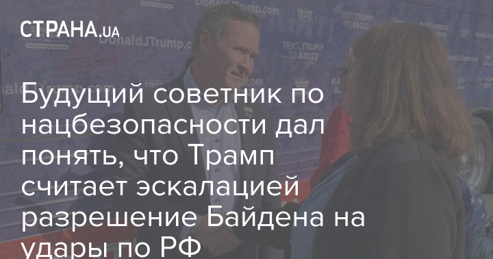 Майбутній радник обраного президента США з нацбезпеки Майк Уолтц дав зрозуміти, що Дональд Трамп вважає ескалацією дозвіл глави Білого дому Джо Байдена, що йде, бити далекобійними ракетами по території РФ.