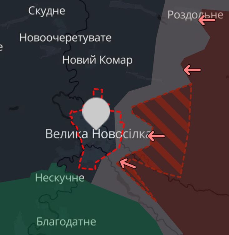 Російські паблики пишуть, що з прориву до міста став можливий через малу кількість військ ЗСУ в опорних пунктах, які обороняють Велику Новосілку.