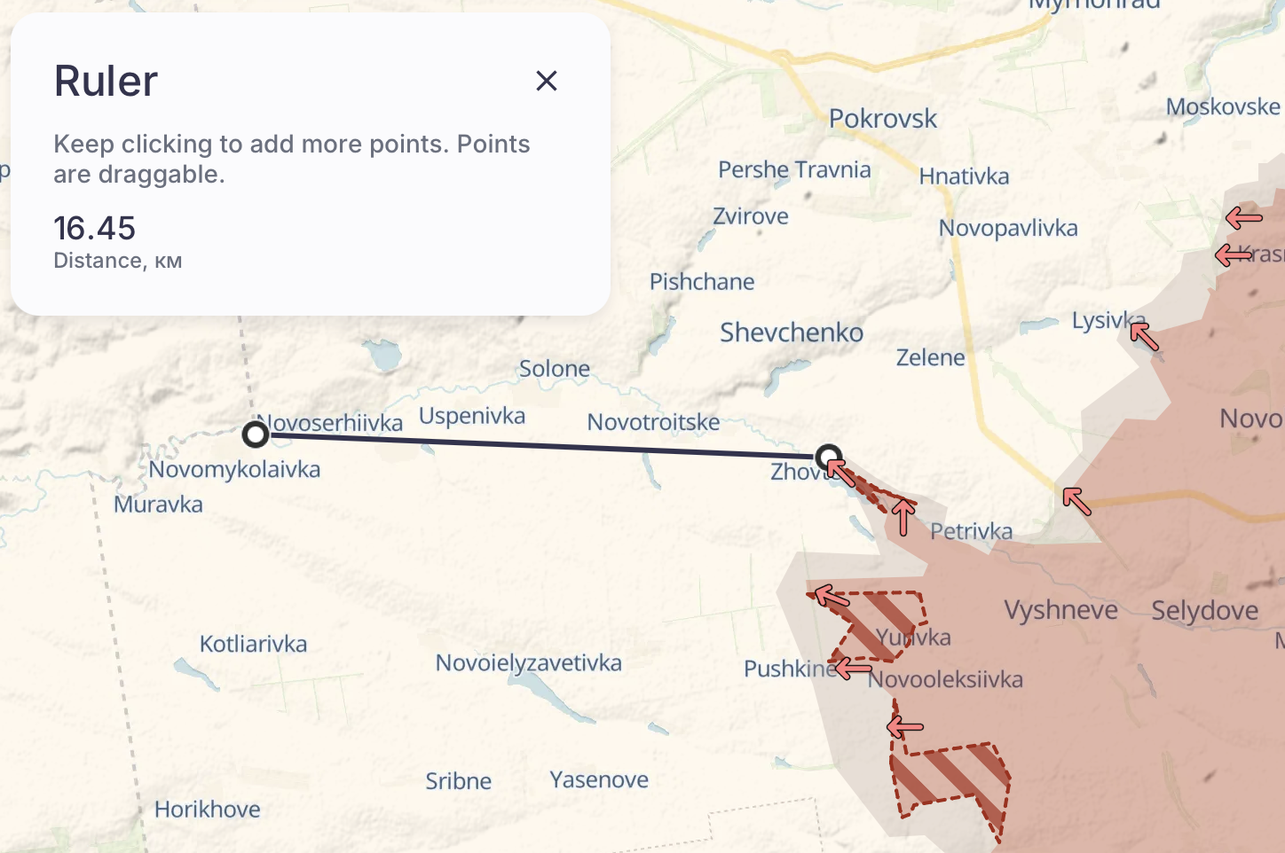 Цілий ряд просувань у РФ був на фронті від Покровська до Курахового Росіяни просунулися на південь від Покровська, почавши обхід міста з цієї сторони.