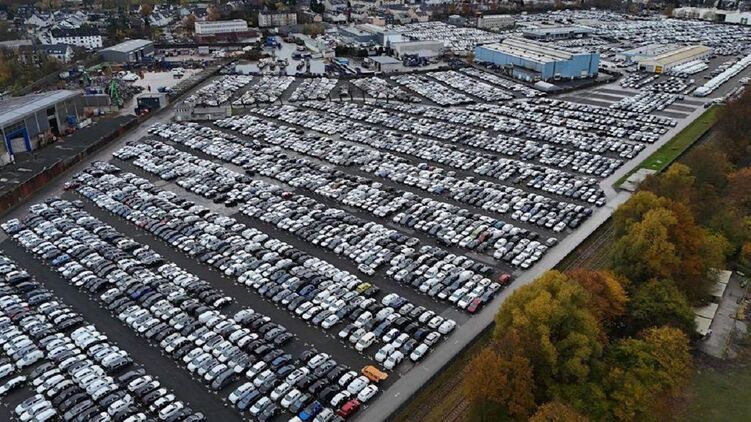 На логістичному майданчику CAT Automobillogistik в Ессені зібралося близько шести тисяч нових непроданих автомобілів. Дорогі моделі Volkswagen, Audi та електрокари залишаються там по півроку, деякі навіть більше року.