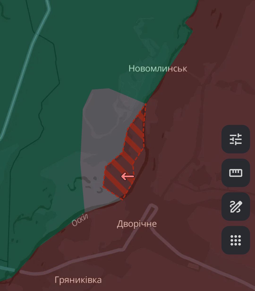 При цьому росіяни розширюють свій плацдарм на лівому березі річки Оскол на північ від Куп'янська. Згідно з картою Deep State, зона російського контролю та "сірий" ділянку боїв розширилися більш ніж на кілометр.