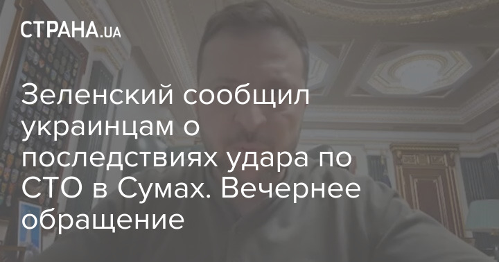 Зеленський повідомив українців про наслідки удару по СТО у Сумах.