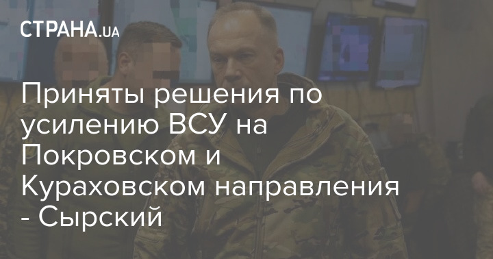 Головнокомандувач ЗСУ Олександр Сирський заявив, що ухвалив рішення про посилення ЗСУ на Покровському та Курахівському напрямках.