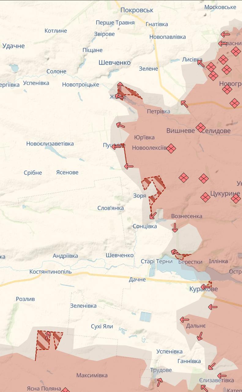 Зазначимо, що минулої доби РФ знову просунулась на цих напрямках, про це свідчить карта Deep State.