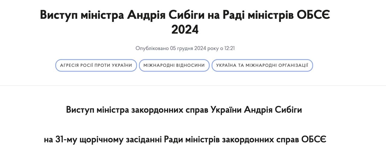 13:02 Міністр закордонних справ Андрій Сибіг вийшов із зали пленарних засідань ОБСЄ на Мальті, коли свій виступ розпочав російський міністр Лавров.