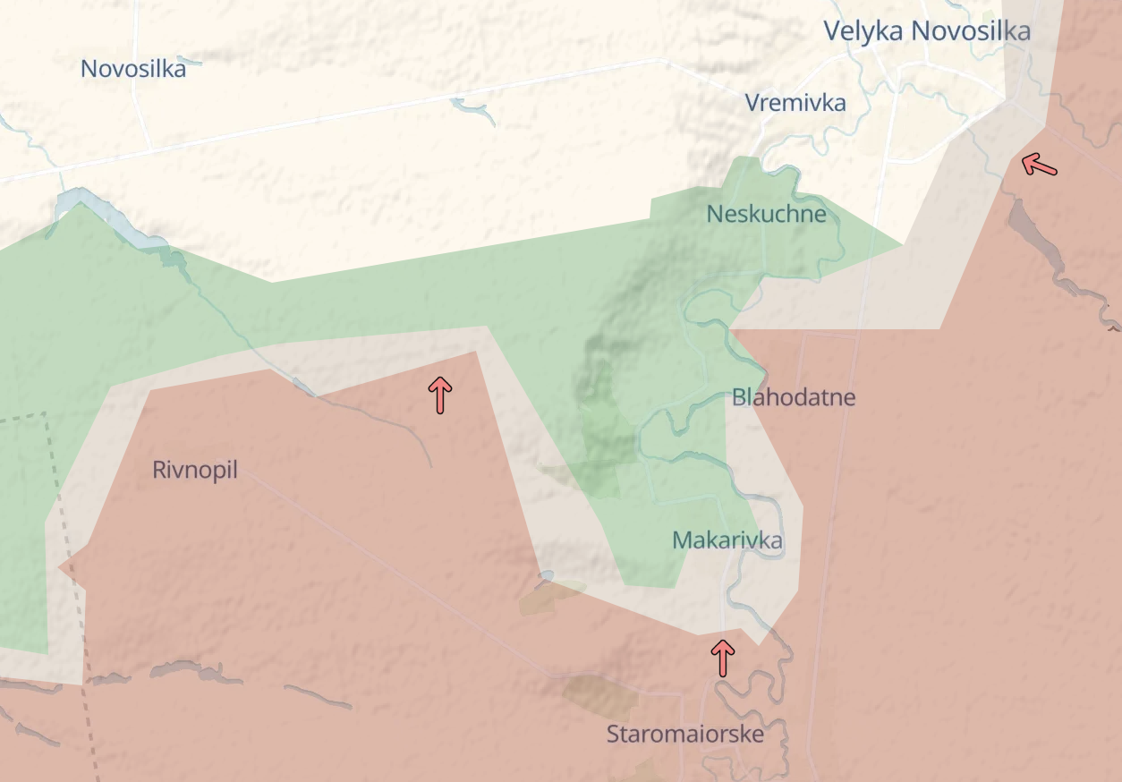У росіян за вихідні було кілька поступів на південь від Великої Новосілки. У результаті на Врем'євському виступі утворилася "кишеня", до якої потрапляють села Сторожове та Макарівка.