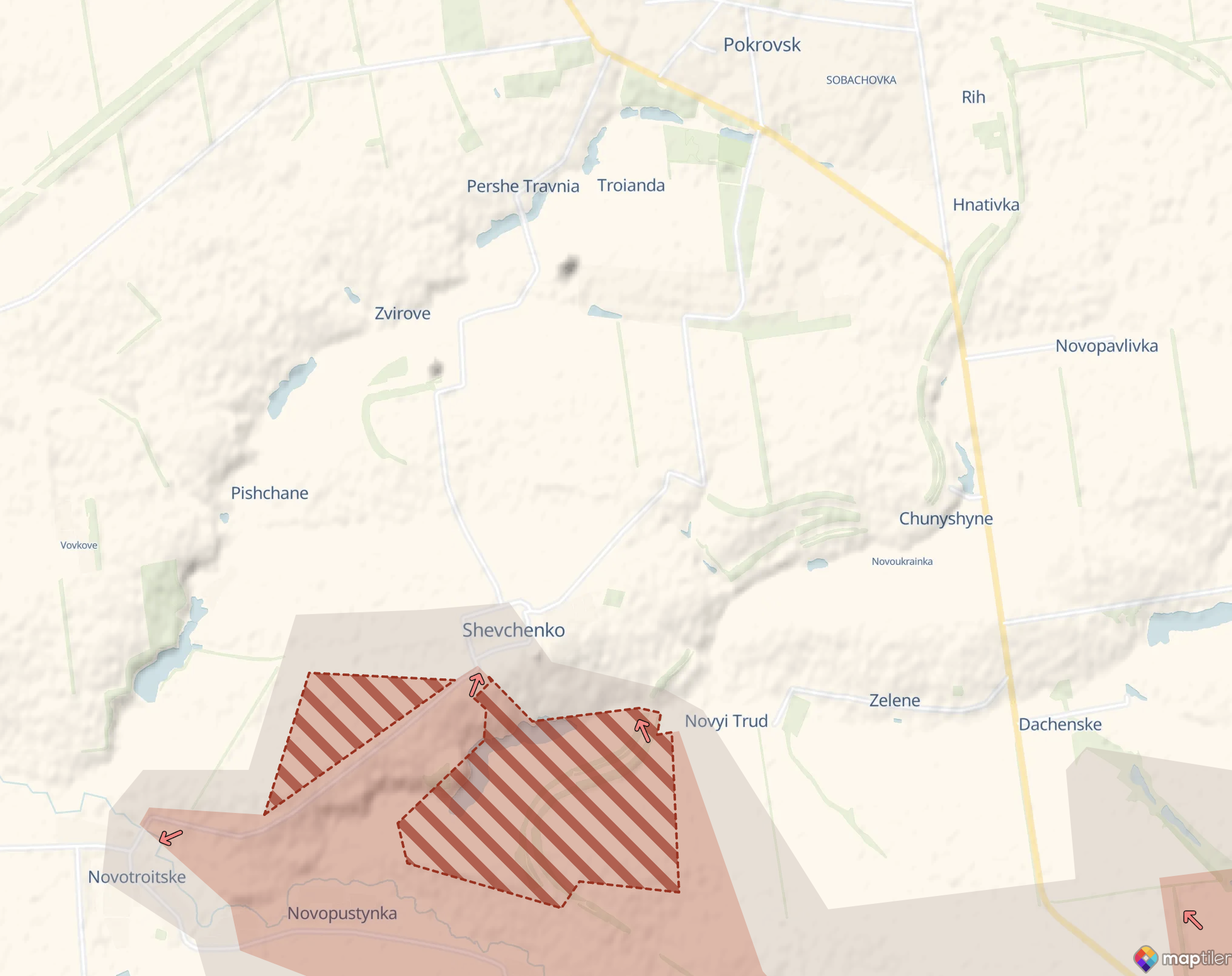 Від Шевченка почався наступ на північний захід - у бік села Піщане, до якого залишилося менше кілометра. Це напрямок із явною спробою охоплення Покровська з тилу.