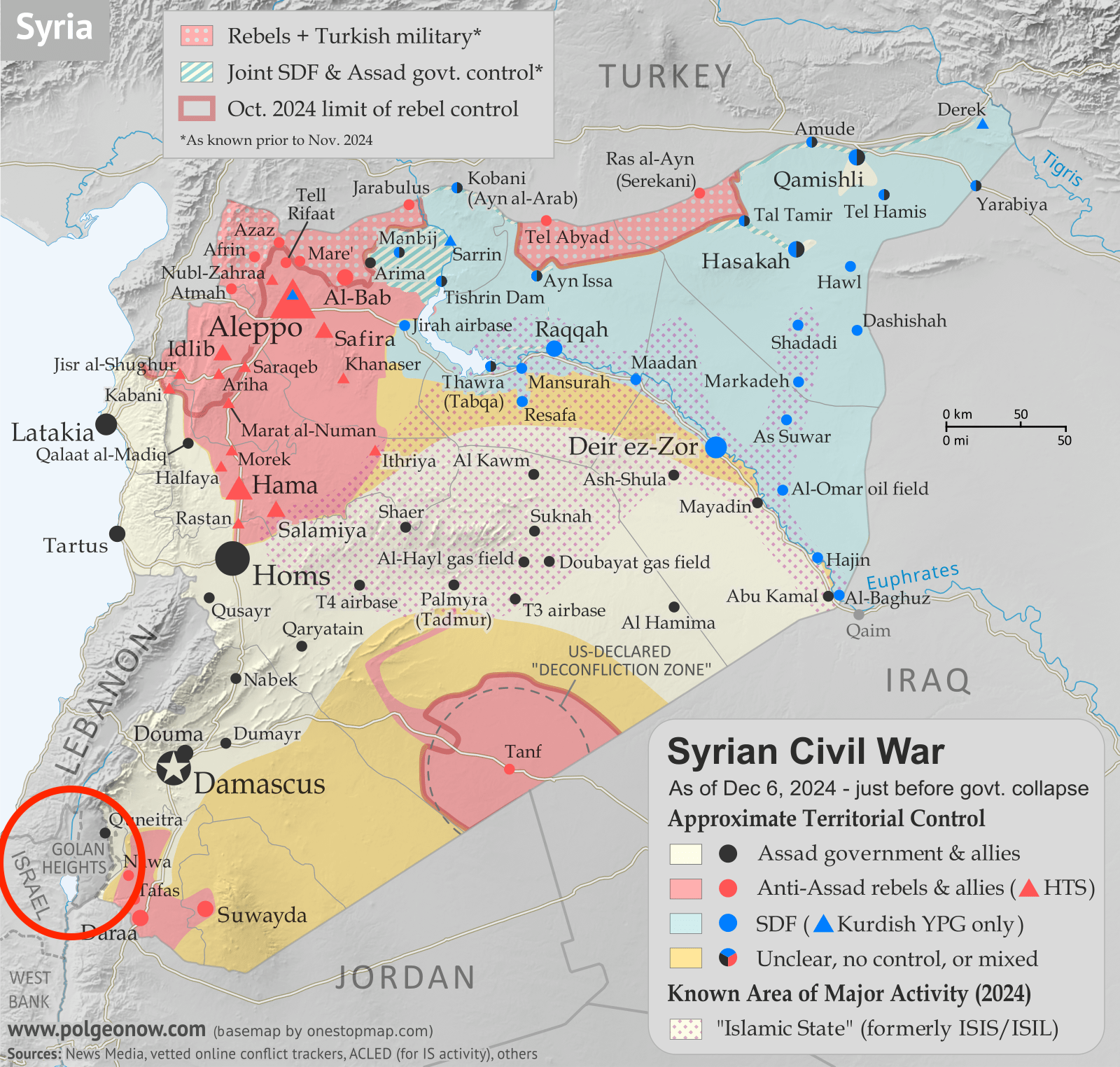 На південному заході Сирії вторгнення почав Ізраїль, який захопив сирійську частину Голанських висот і вторгся до міст за їхніми межами. За однією з версій – щоб перерізати логістику для Лівану. Іншою - з метою поставити під свій контроль всю південну Сирію. Що цікаво, ніхто серед сирійських угруповань, що скинули Асада, проти цього вторгнення не протестує.
