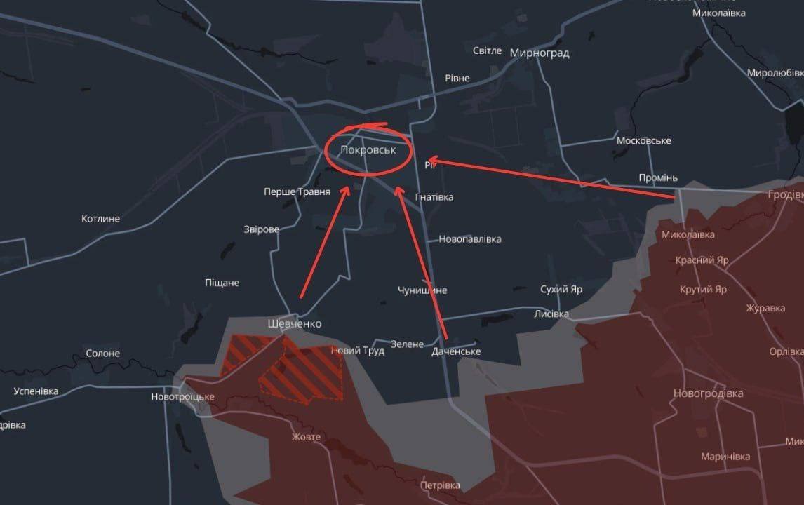 Раніше ми публікували карти нових поступів російських військ на південь від Покровська.