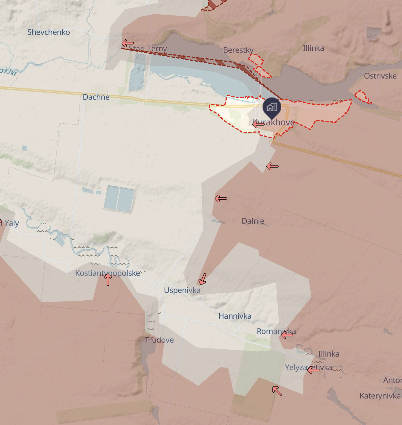 "Алекс" також пише, що захоплення Шевченка створює загрозу охоплення Покровська із заходу та виходу РФ на трасу на Павлоград. Він зазначає, що з урахуванням рельєфу подальший рух РФ можливий на північ або на північний захід від Шевченка.