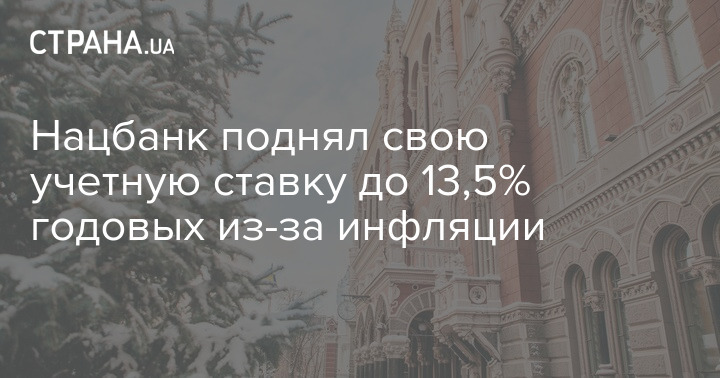 Нацбанк підняв свою облікову ставку до 13,5% річних через інфляцію