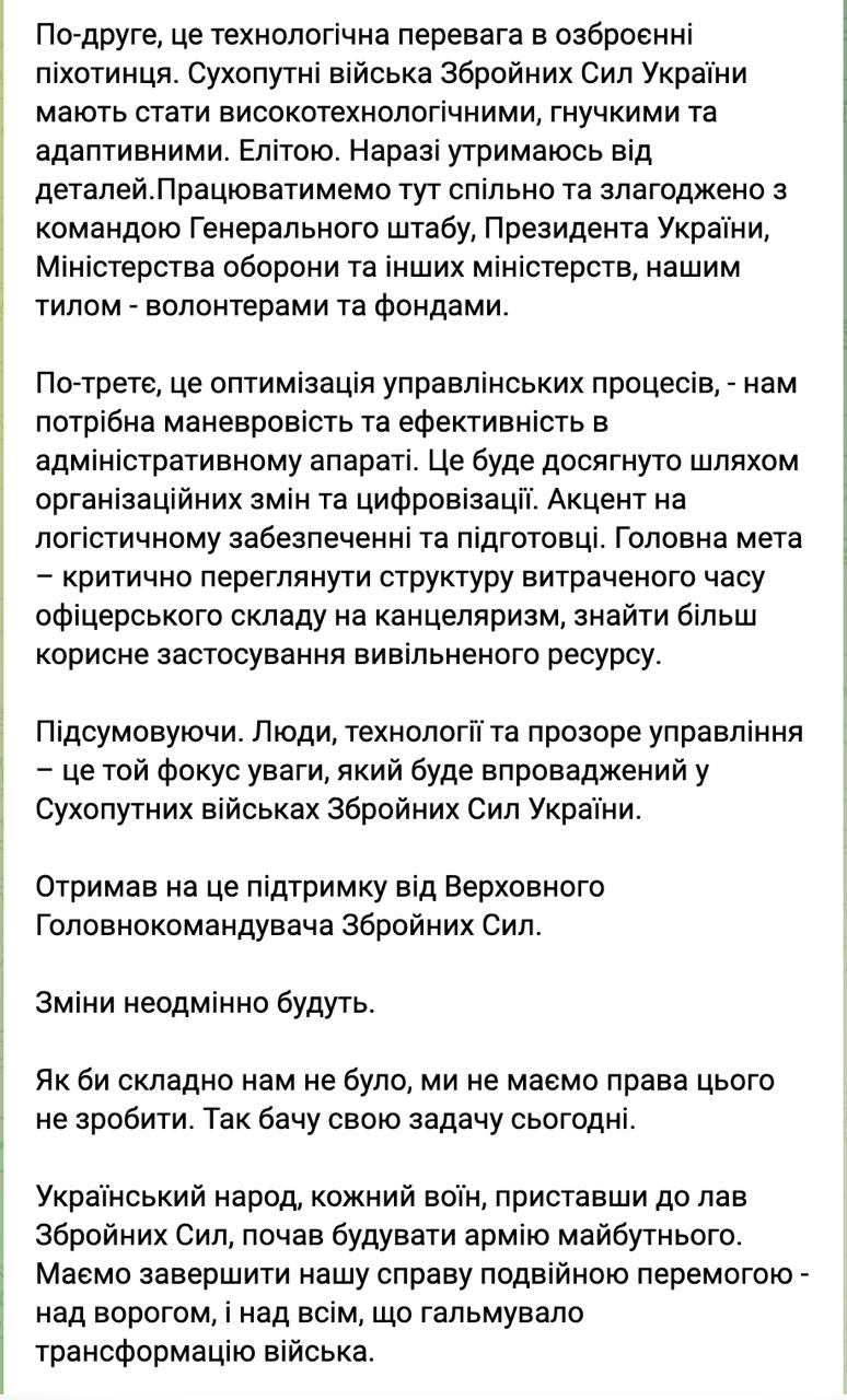 Він анонсував "переформатування програм та трансформацію навчальних центрів для більш швидкої, але водночас високопрофесійної підготовки".