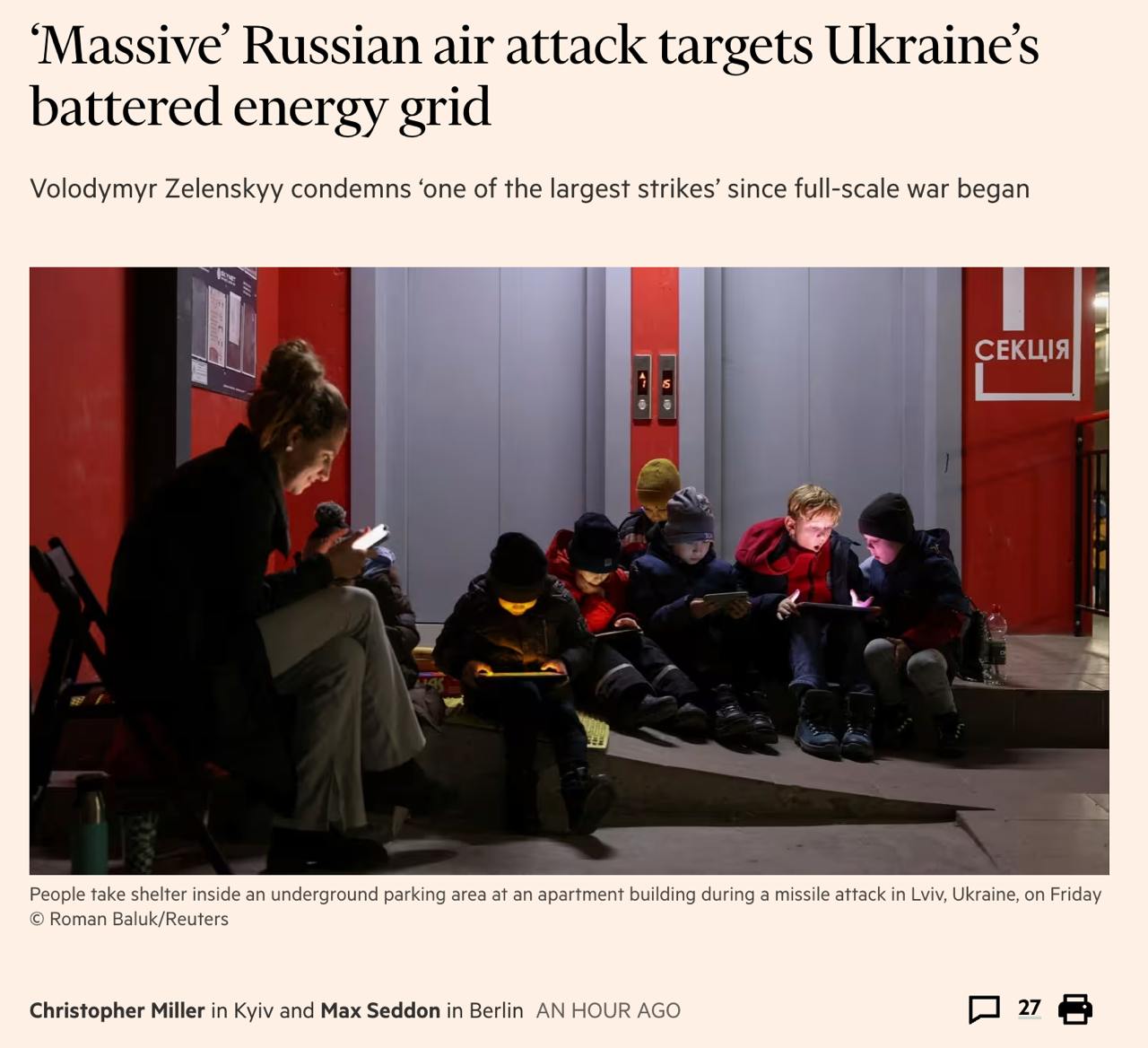 08:41 Енергетика України перебуває під масованим ракетним ударом.