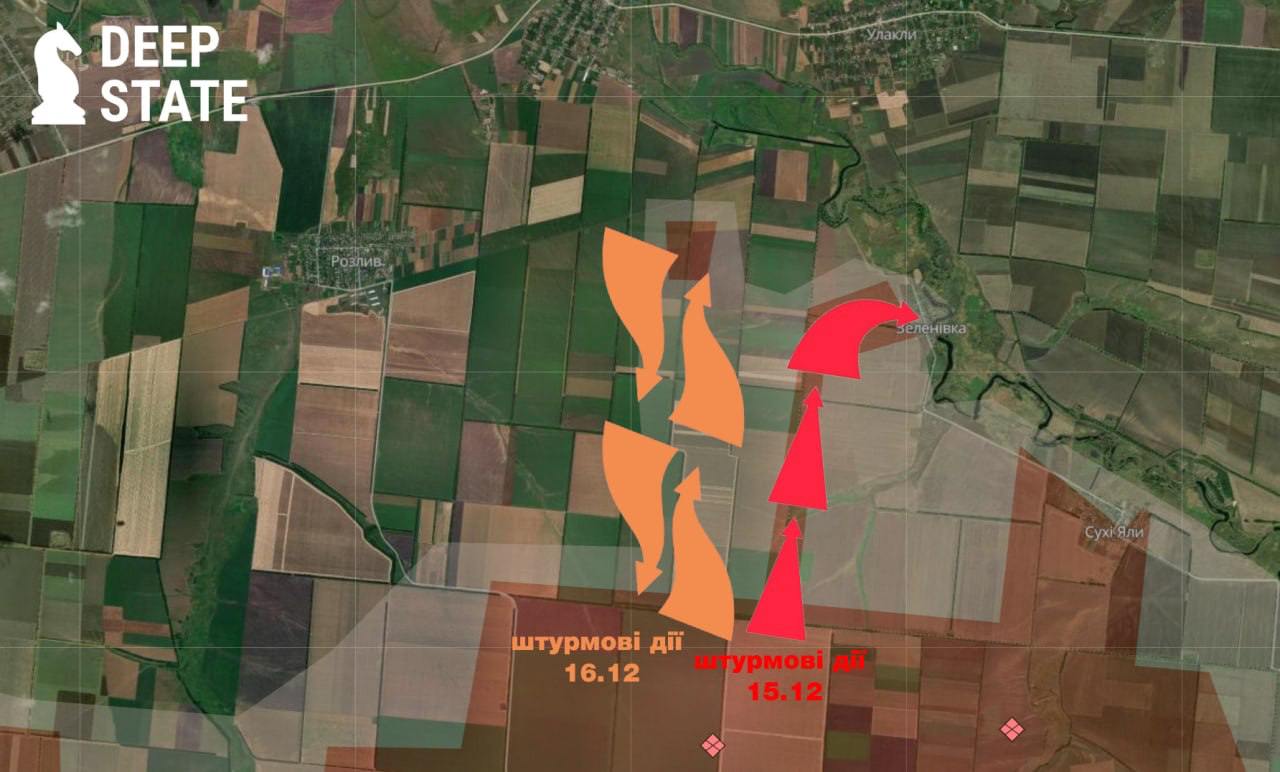 Карта Deep State свідчить, що росіяни захопили Сонцовку на північному фланзі, а на південному зайняли ділянку в полі на північний захід від Зеленівки, приблизно за два кілометри від траси на Курахово.