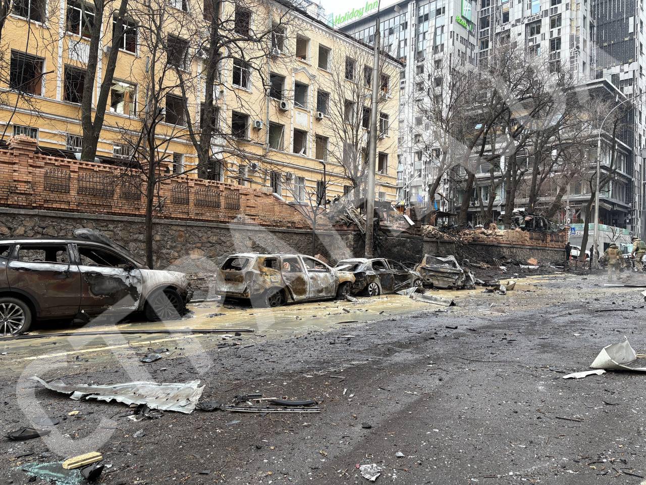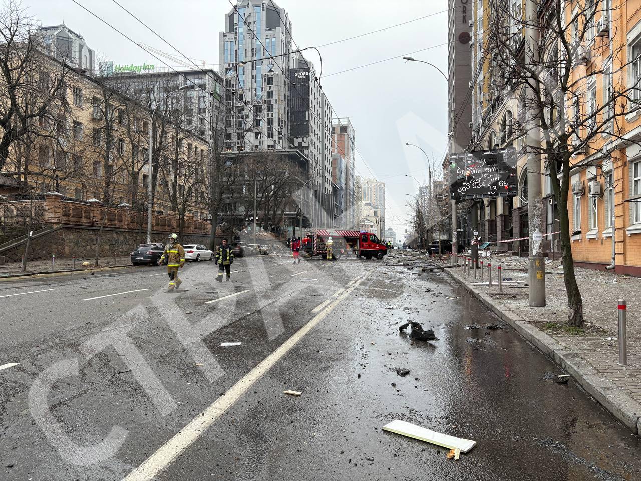 08:44 Момент прильоту у районі бізнес-центру на вулиці Великій Васильківській у Києві.