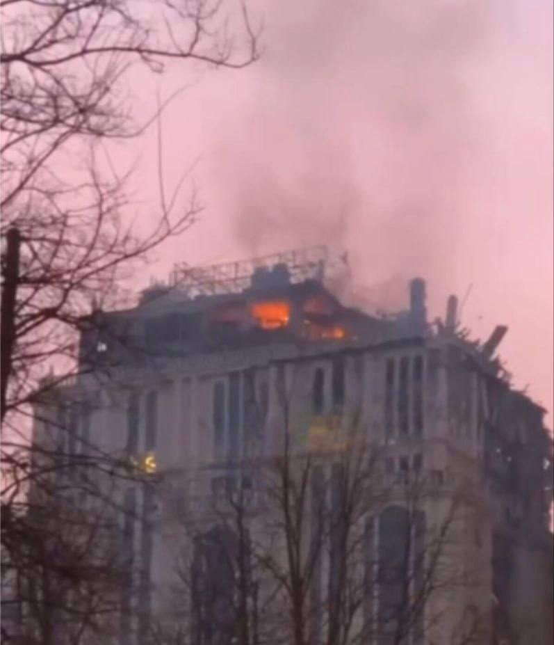 09:33 Вид на БЦ "Торонто" у Києві після ракетної атаки.