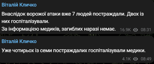 За його словами, під час ранкової ракетної атаки постраждали семеро людей.