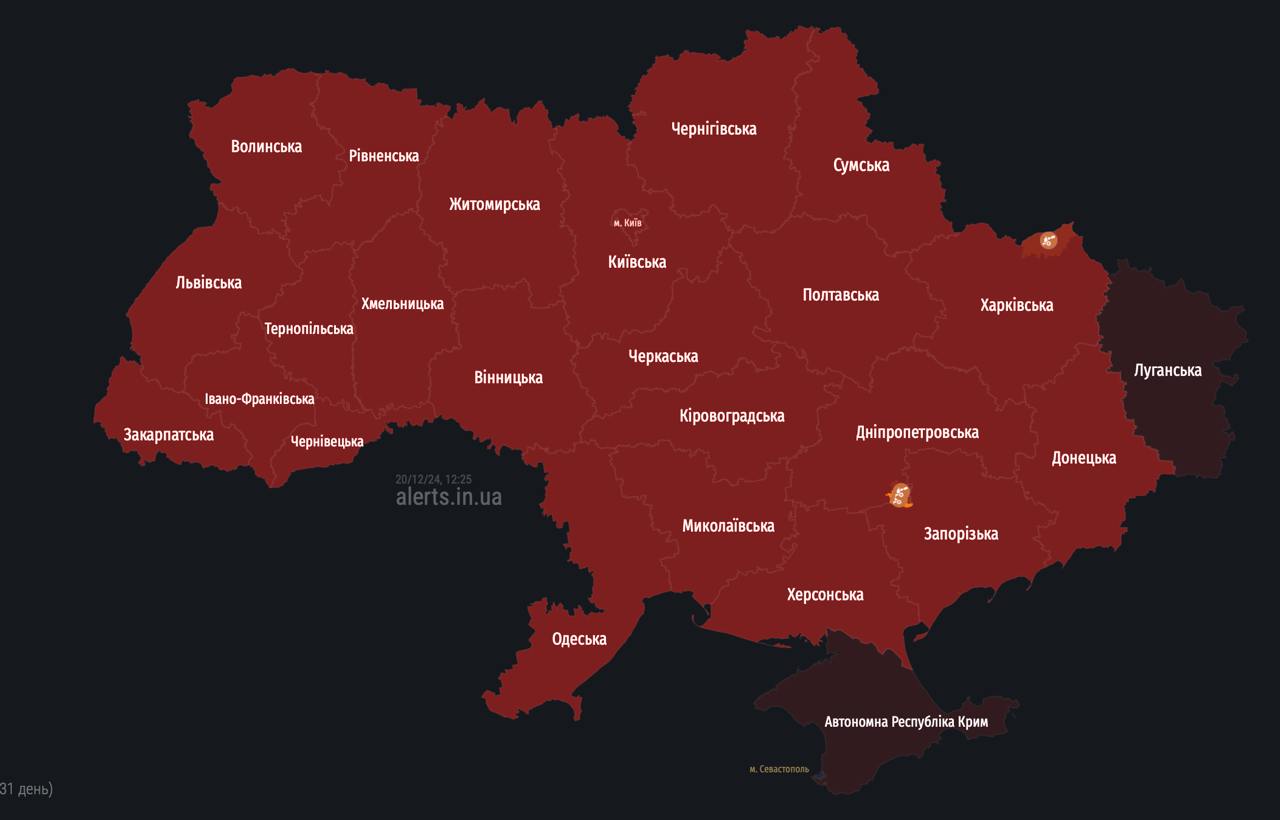12:13 Повітряна тривога по всій Україні через загрозу балістики.