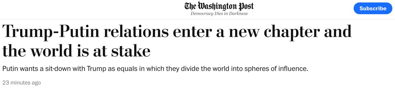 "По суті, це означає, що саміт Трампа та Путіна може розділити світ на сфери впливу, при цьому буде гарантовано верховенство Росії над Україною, Грузією та іншими колишніми радянськими сусідами, які не входять до НАТО. Це обмежить НАТО і поставить під загрозу безпеку Європи" - вважає WP.