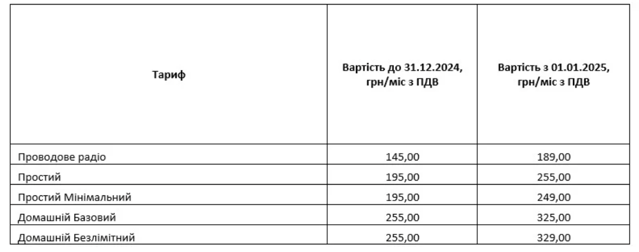 Тариф на провідне радіо збільшиться зі 145 до 189 гривень на місяць.