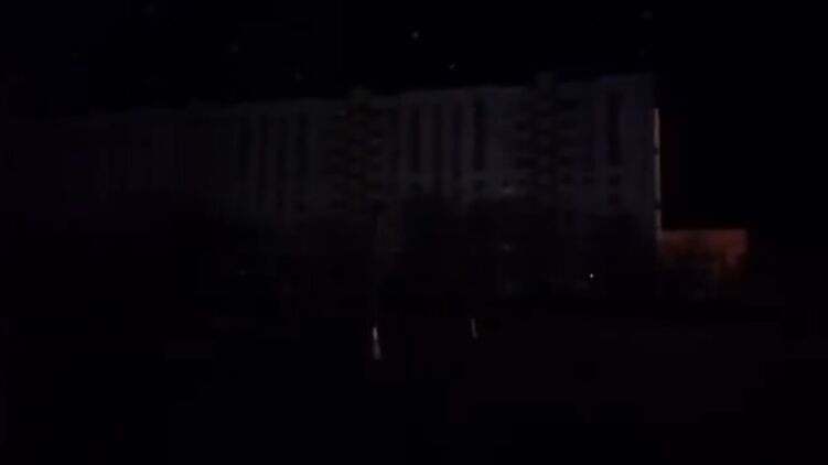 При зйомці з висоти видно, наскільки великі площі простоюють без електрики - лише далеко за чорними силуетами багатоповерхівок проглядається світла смуга вогнів.