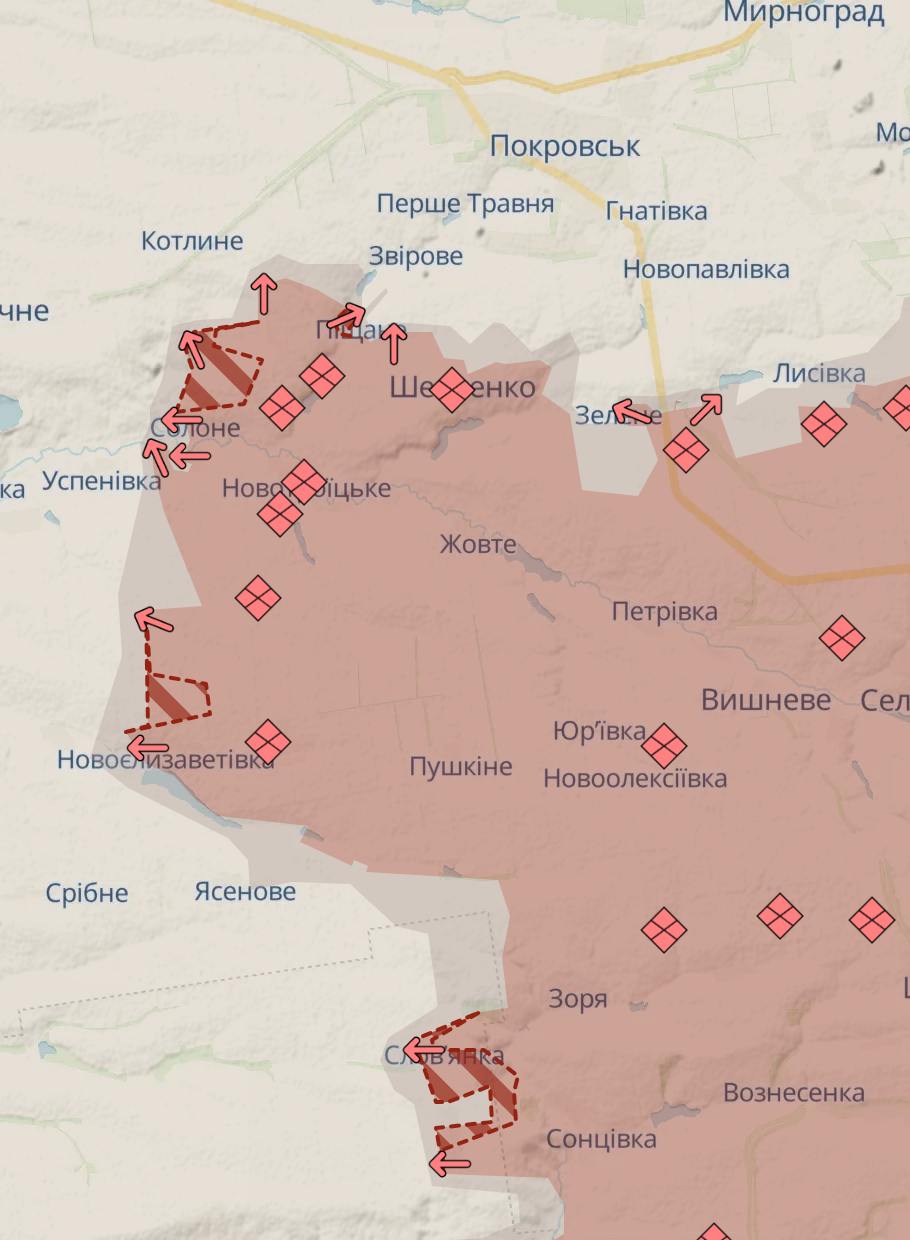 Під Покровськом у РФ просування на південний захід, у бік Вдалого, і на схід, у бік траси на Костянтинівку.