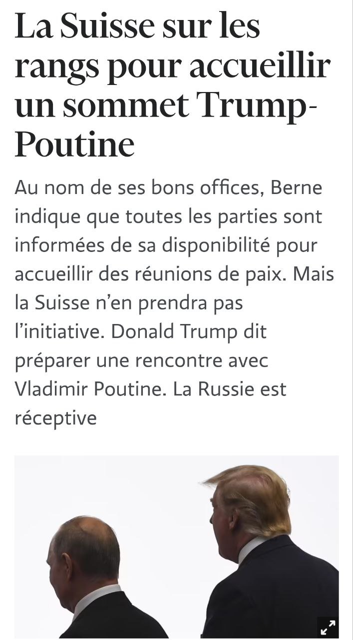 Швейцарія запропонувала провести у себе зустріч новообраного президента США Дональда Трампа та Володимира Путіна.
