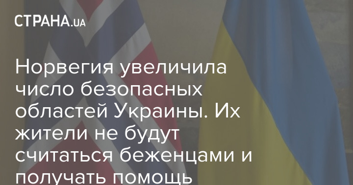 Норвегія збільшила кількість безпечних областей України. Їх жителі не вважатимуться біженцями та отримуватимуть допомогу
