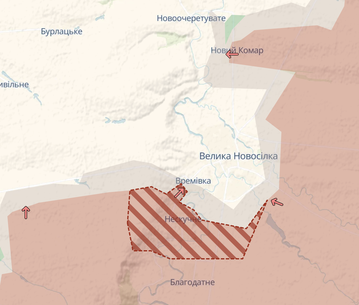 Також російські війська захопили Ненудне під Великою Новосілкою, свідчить карта Deep State. Раніше про захоплення Ненудного заявляло міноборони РФ.