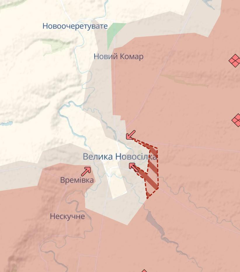 Армія РФ просунулася на південному сході Великої Новосілки, що оточена з трьох сторін, свідчить карта Deep State.