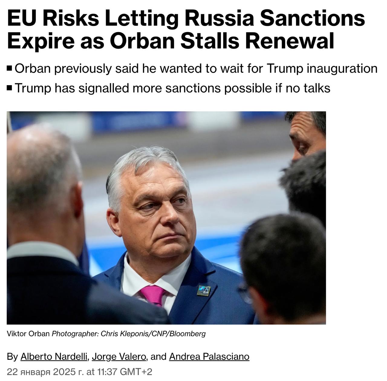Термін дії санкцій ЄС проти РФ може спливти через Орбана, який блокує їхнє продовження - Bloomberg