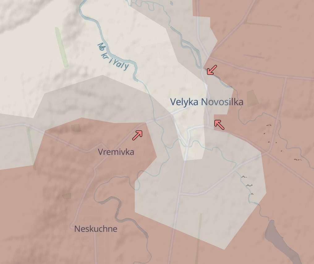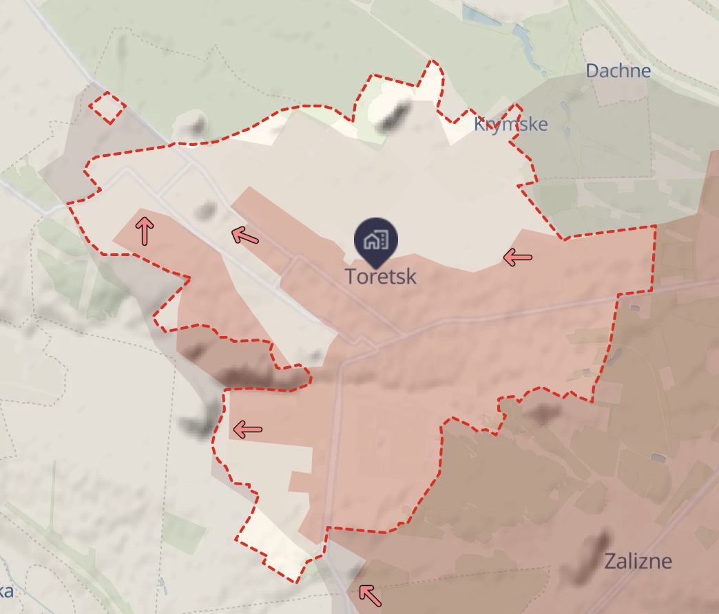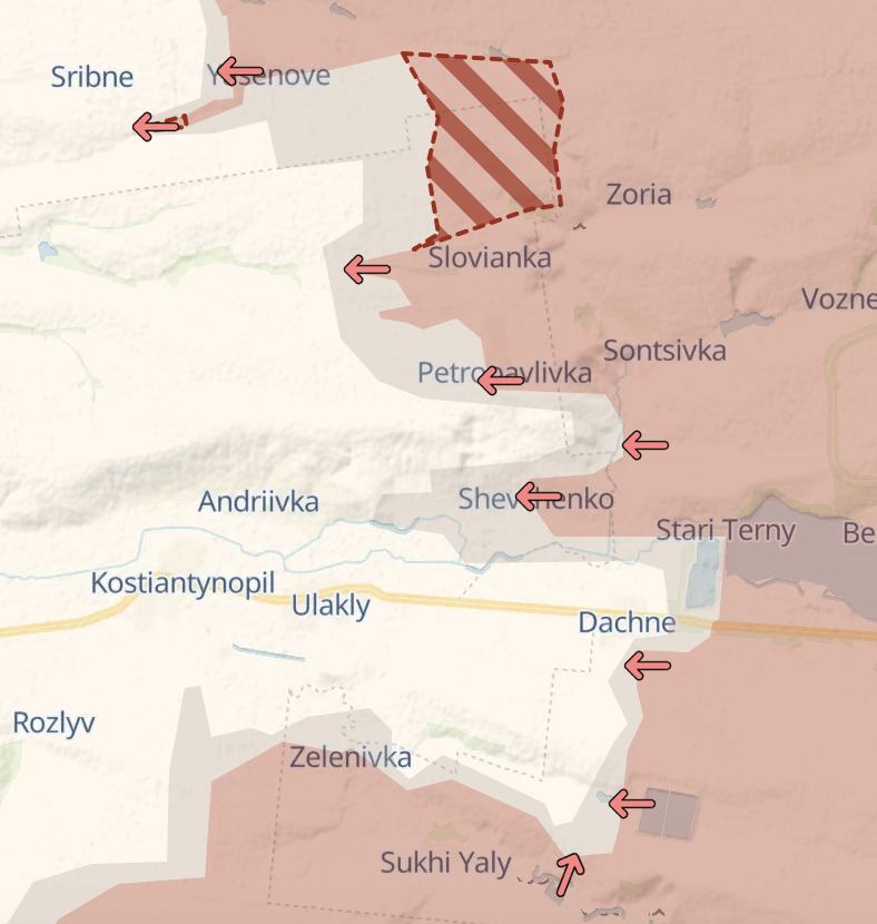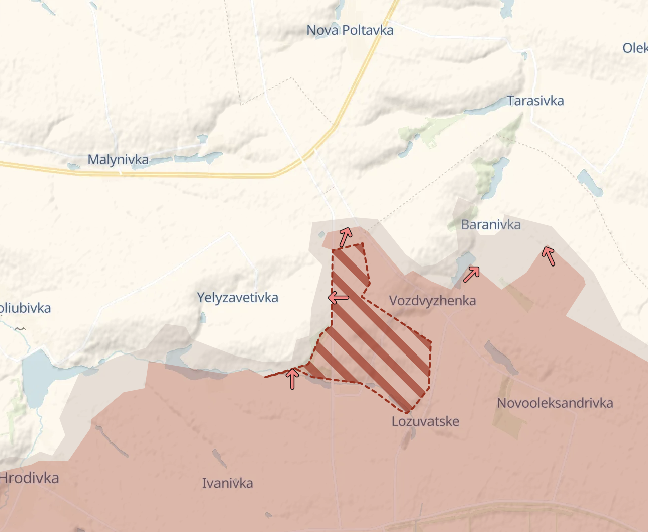Карта Deep State фіксує за добу два російські поступи - в районі Воздвиженки на схід від Покровська і на північний захід від Курахового (на північ від Слов'янки).
