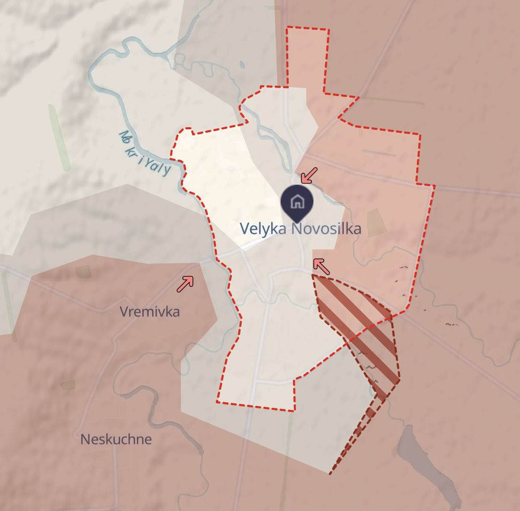 "Велика Новосілка зараз перебуває у досить скрутному становищі. Українські воїни роблять все, щоб не допустити подальшого просування противника. Повного оточення там немає. Є ризик оперативного оточення, але робляться зусилля, щоб його не допустити і щоб росіянам не вдалося заблокувати підходи до селища, хоча вони намагаються взяти їх під вогневий контроль", - заявив він в ефірі телемарафону.