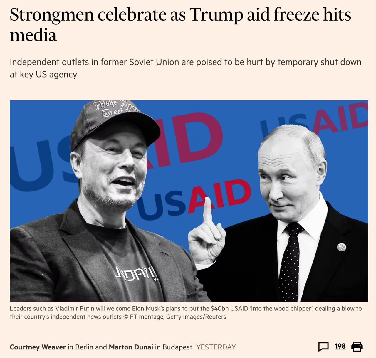 Багато російських та білоруських опозиційних ЗМІ також фінансувалися через USAID. Про це повідомляє Financial Times.