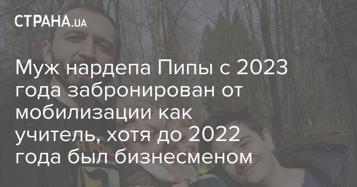 Чоловік нардепа Піпи з 2023 року був заброньований від мобілізації як вчитель, хоча до 2022 року був бізнесменом