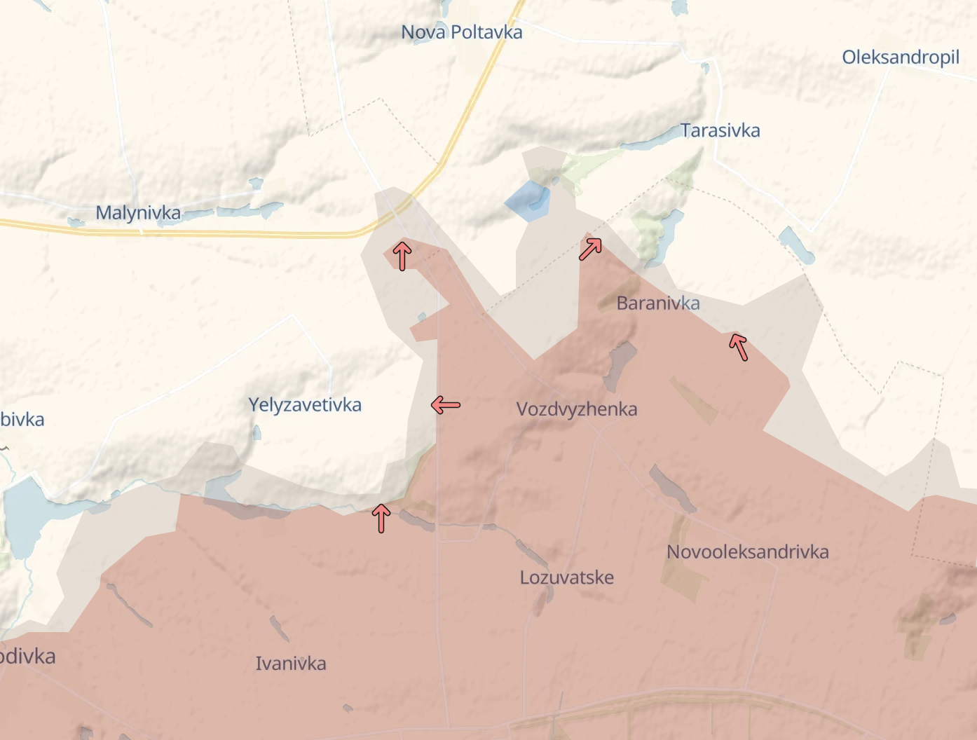 На схід від Покровська росіяни вийшли на перехрестя траси Покровськ - Костянтинівка, а на схід від ЗСУ відбили село Водяне Друге.