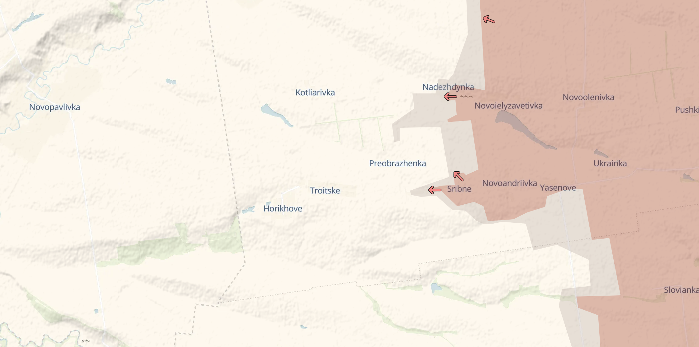 На південь від Покровська росіяни прагнуть наблизитися до кордонів Дніпропетровської області з боку сіл Срібне та Запоріжжя, де у них також є просування на захід. Deep State пише, що на цій ділянці, всупереч очікуванням, війська РФ рушили не на південь, а на захід, до села Оріхове на кордоні двох регіонів.