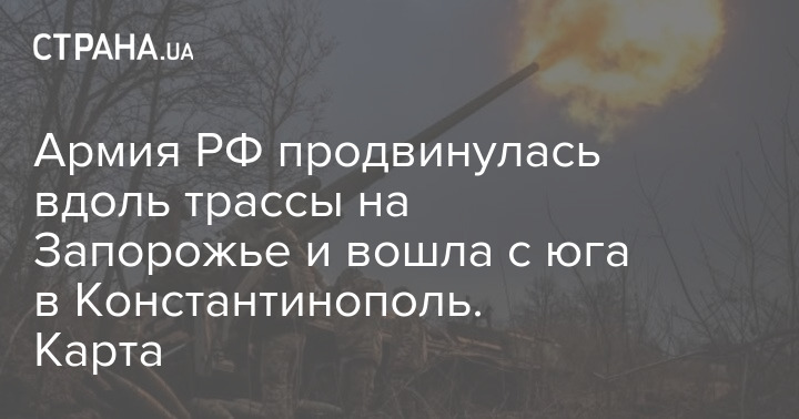 Армія РФ просунулася вздовж траси на Запоріжжі та увійшла з півдня до Константинополя. Карта