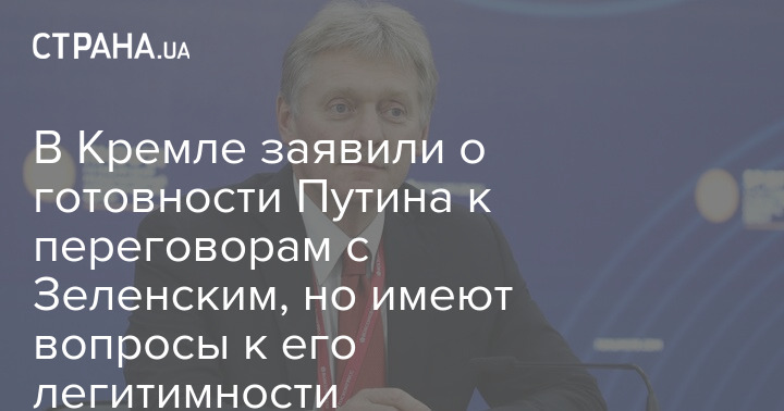 "Путін сам неодноразово говорив, що за потреби він буде готовий вести переговори і з Зеленським. Водночас юридична фіксація домовленостей підлягає серйозному обговоренню з урахуванням реальності, яка говорить про можливість заперечувати легітимність самого Зеленського", - сказав речник Кремля.